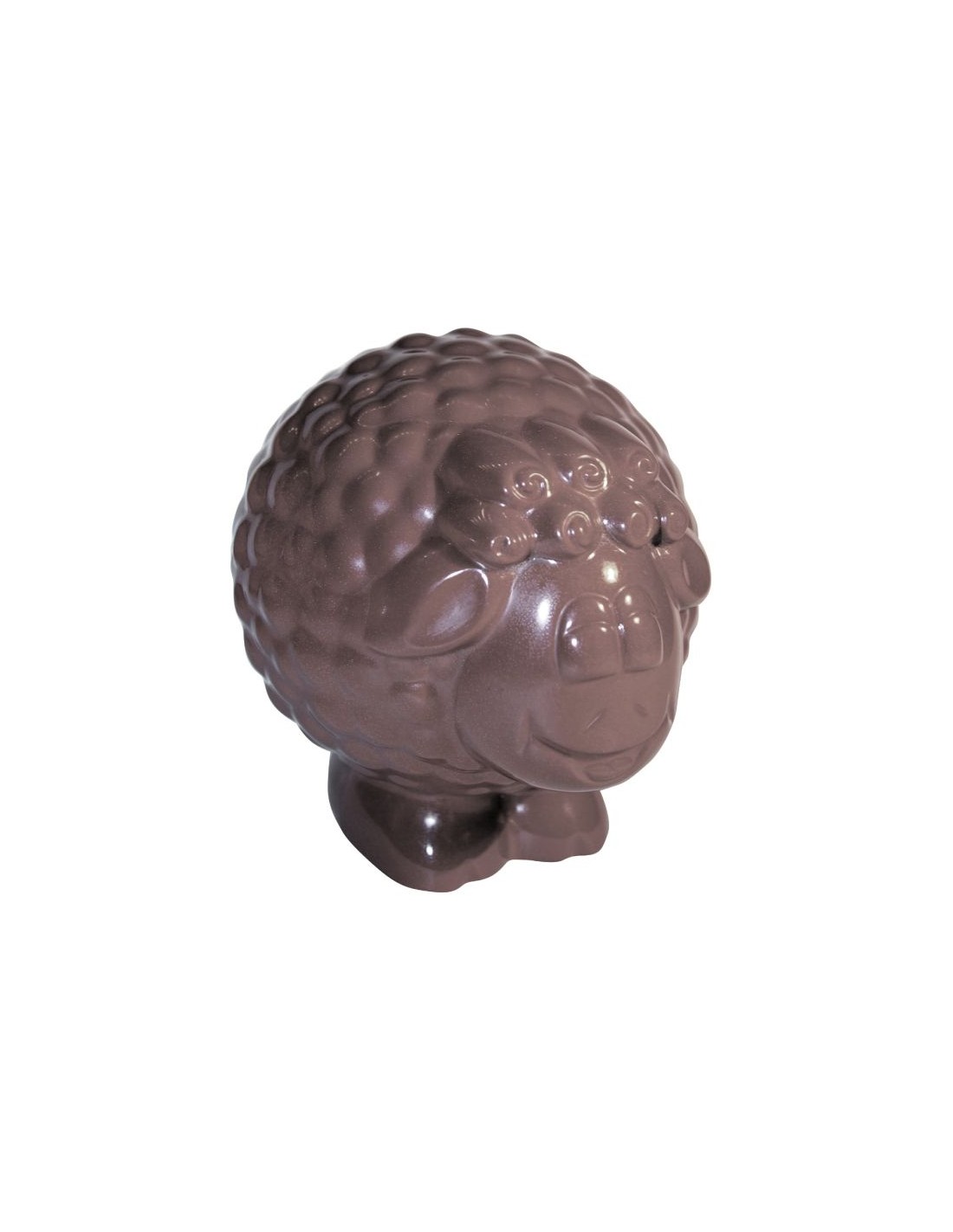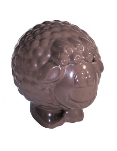 Mouton 160g décliné en chocolat noir 70% ou lait 36% garni de friture, de petits œufs de garniture.