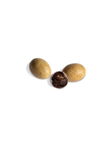 Ingrédients : sucre, beurre de cacao, LAIT entier en poudre, AMANDES, NOISETTES, fèves de cacao, lactoserum, lécithine de SOJA, mélange d'épices, arômes naturels de vanille, colorant E153, extrait naturel de vanille, agent d'enrobage : cire d'abeille, cire de carnauba.